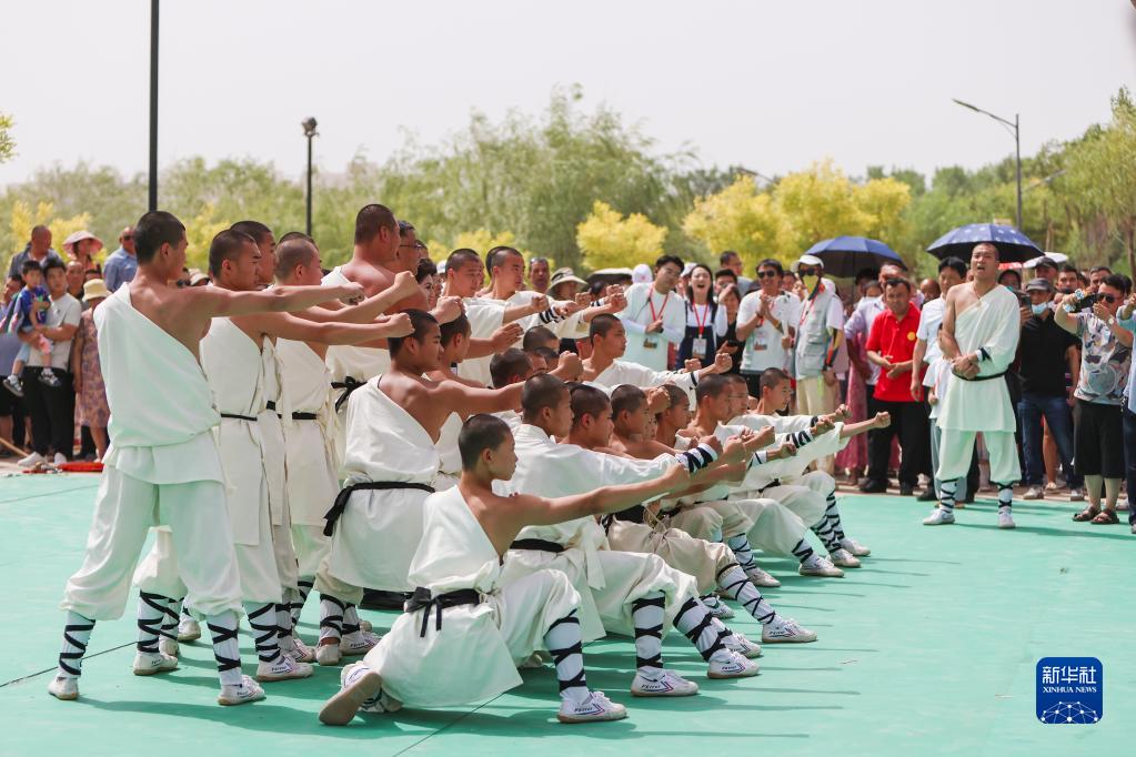 6月17日,在第十九届多浪龟兹文化旅游节现场,游客在观看武术表演。