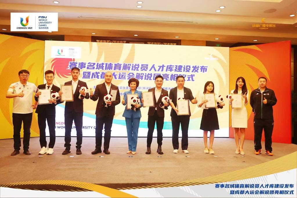 一场精彩的体育赛事往往离不开体育解说员的出色发挥,比赛现场的实时评述、技术要点的准确分析,都能为赛事带来更多乐趣与价值。据了解,成都大运会解说团由国内知名体育解说员、成都本地体育解说员以及《我要说大运》优秀选手组成。当日,20名大运解说团成员正式亮相,中央广播电视总台体育主持人、解说员韩乔生、蔡猛、洪钢,知名解说员金宝成、刘宁等观众颇为熟悉的面孔位列其中,他们分别送上了视频祝福。