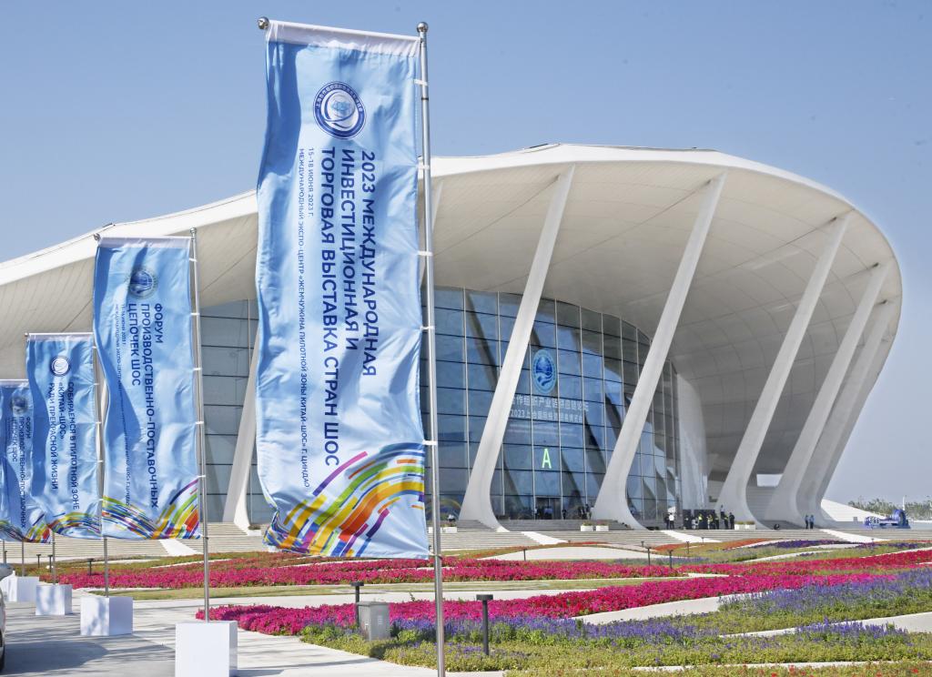 6月15日,上海合作组织产业链供应链论坛暨2023上合国际投资贸易博览会在青岛开幕。博览会包含上合组织国家形象展、上合合作成果展、上合优质产业展等板块,涵盖新能源、智慧农业、跨境电商、生物科技、智能家居、健康生活等领域,为上合组织及“一带一路”沿线国家提供经贸合作、展示、交流的平台。新华社记者 李紫恒 摄