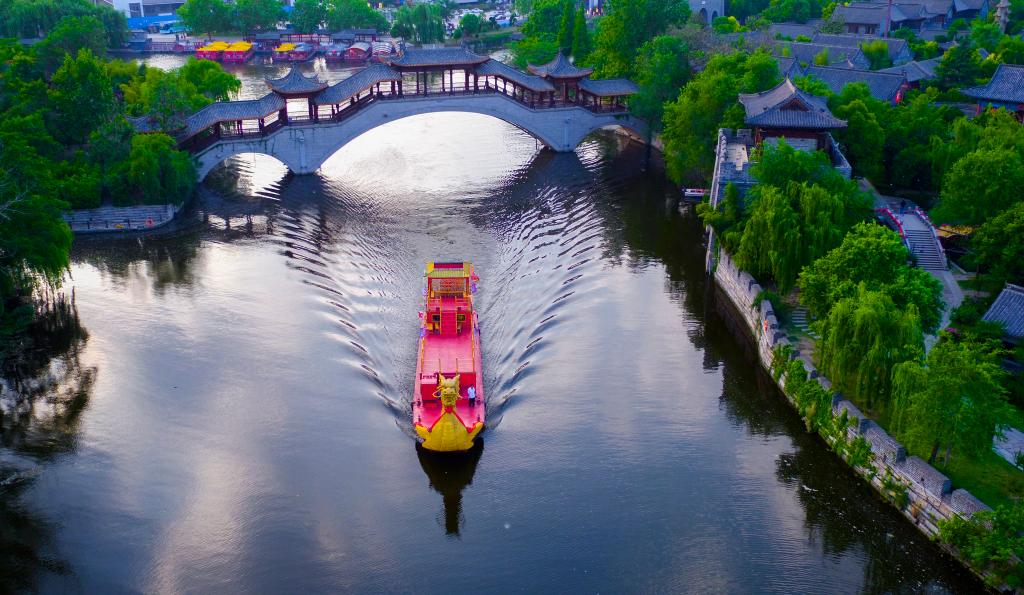 一艘游船从古城内的运河上驶过。(受访单位供图)
