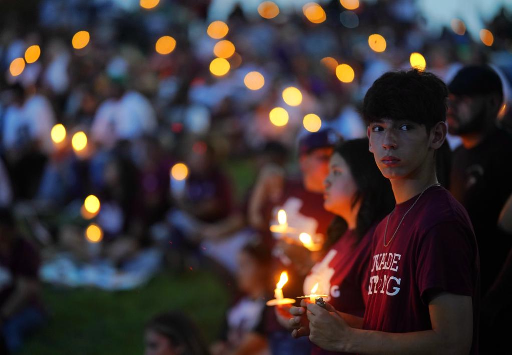 5月24日,在美国得克萨斯州小城尤瓦尔迪,人们参加守夜仪式悼念一年前校园枪击事件的遇害者。新华社记者 吴晓凌 摄