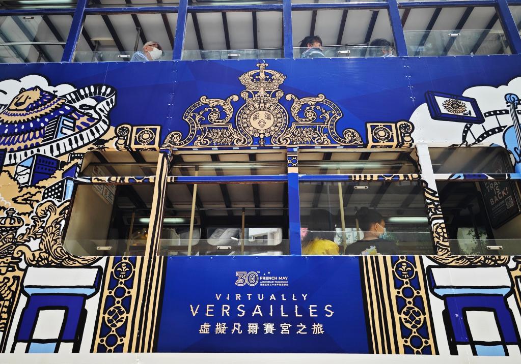 这是5月18日在香港拍摄的“虚拟凡尔赛宫之旅”展车体广告。新华社记者 王申 摄