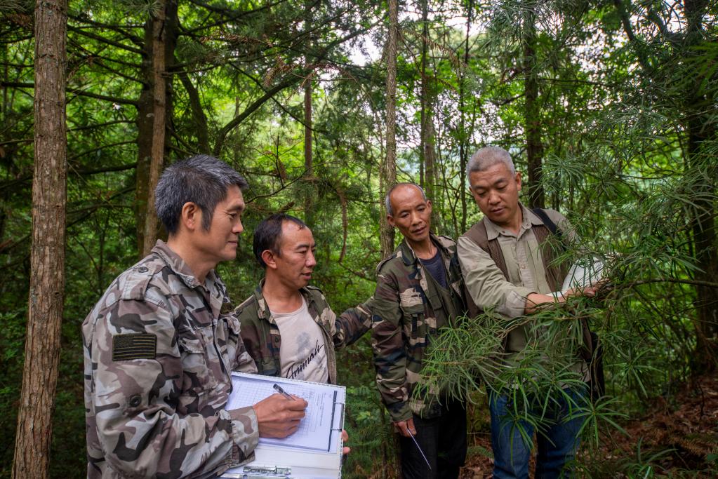 科研工作者正在大沙河国家级自然保护区对银杉考察。(2023年5月19日 徐建 摄)