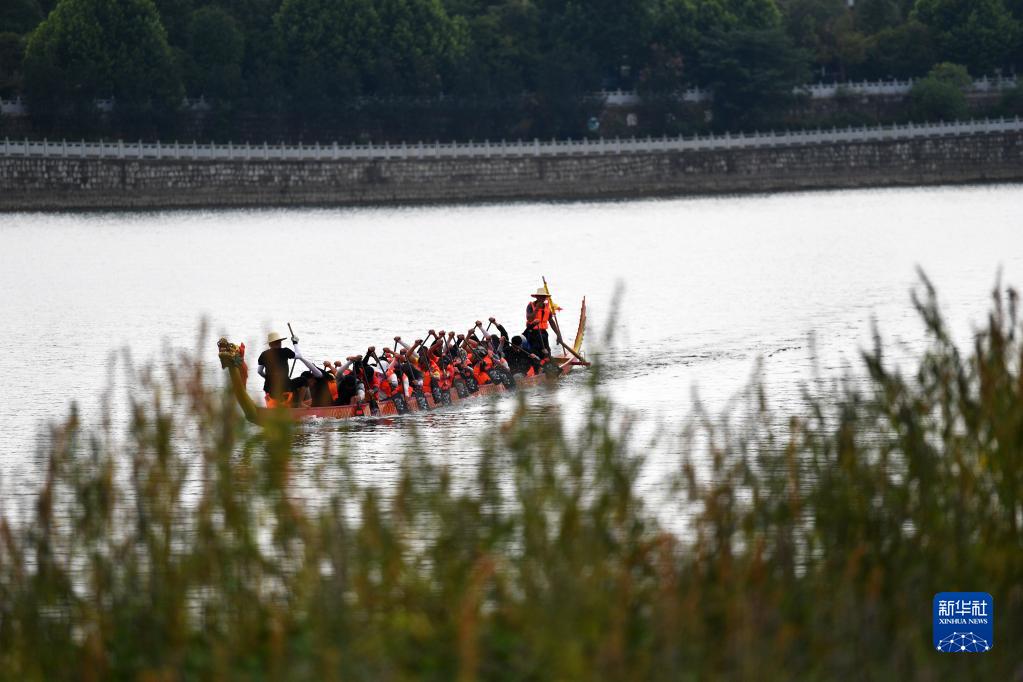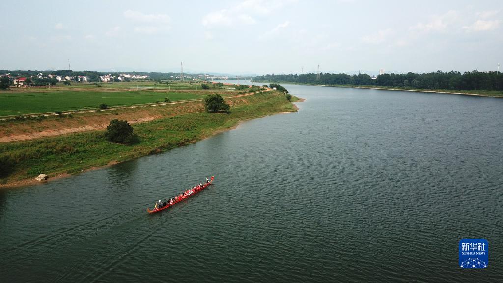 新华社长沙6月18日电(记者周楠、余春生)“咚咚咚……”18日下午,烈日当空,湖南省汨罗江国际龙舟竞渡中心前,随着一串急促、有力的鼓点声响起,两条龙舟在汨罗江上破浪前行。