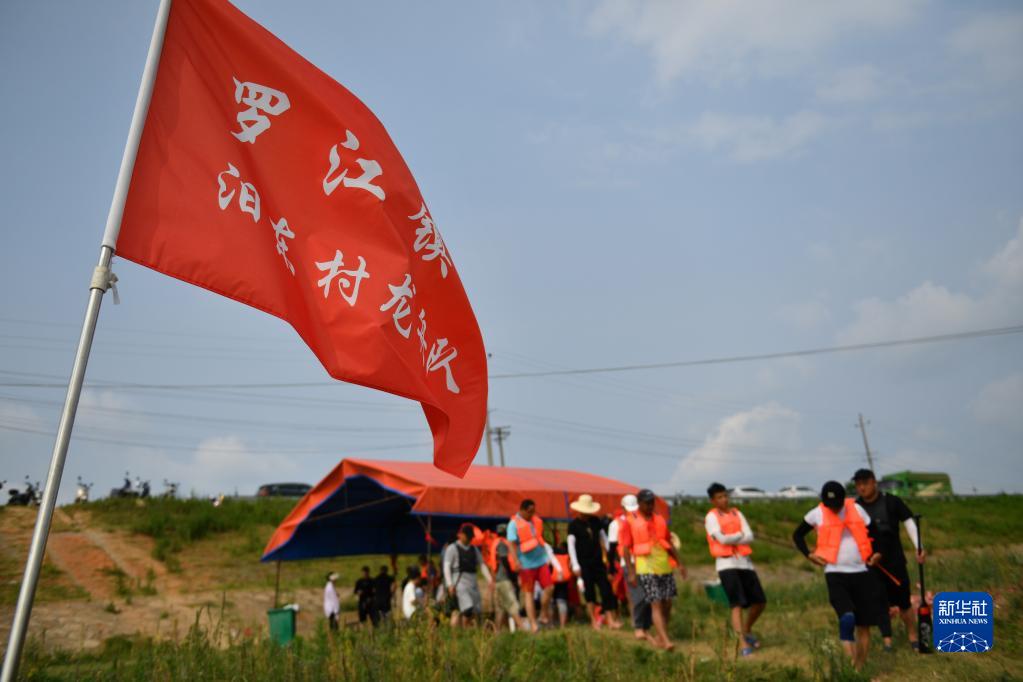 6月13日,汨罗市罗江镇汨东村龙舟队准备训练。新华社记者 陈振海 摄