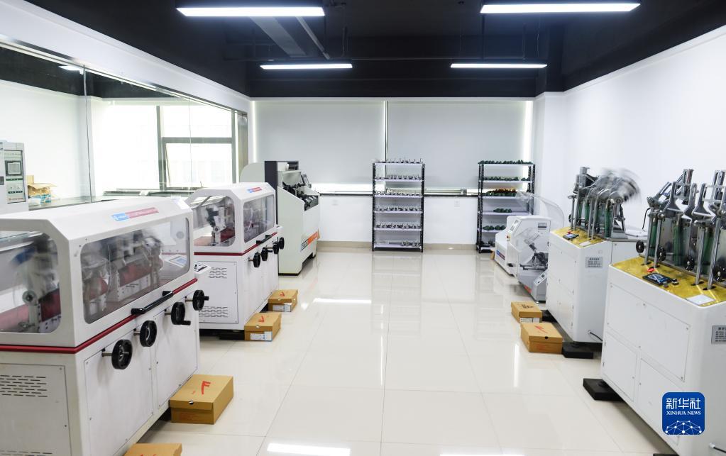 6月18日在中国皮革和制鞋工业研究院(晋江)有限公司拍摄的鞋革耐折检测实验室。