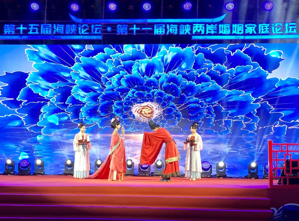 6月18日,表演者在第十一届海峡两岸婚姻家庭论坛文艺晚会上表演婚礼庆典。新华社记者 许雪毅 摄