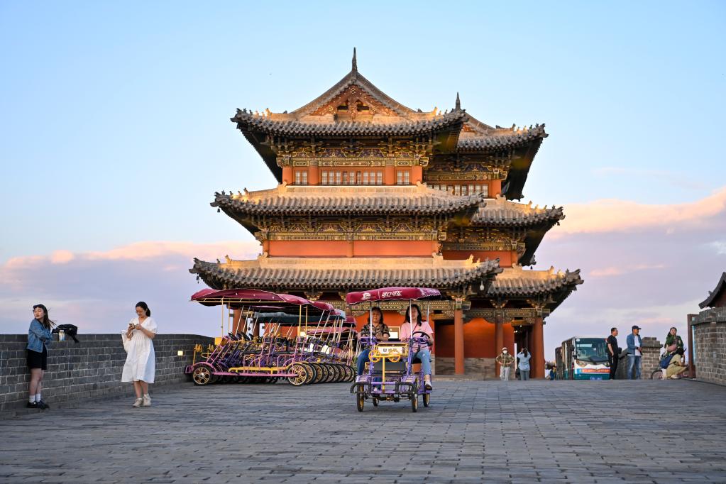 6月8日,游客在大同古城墙上游览。新华社记者杨晨光 摄