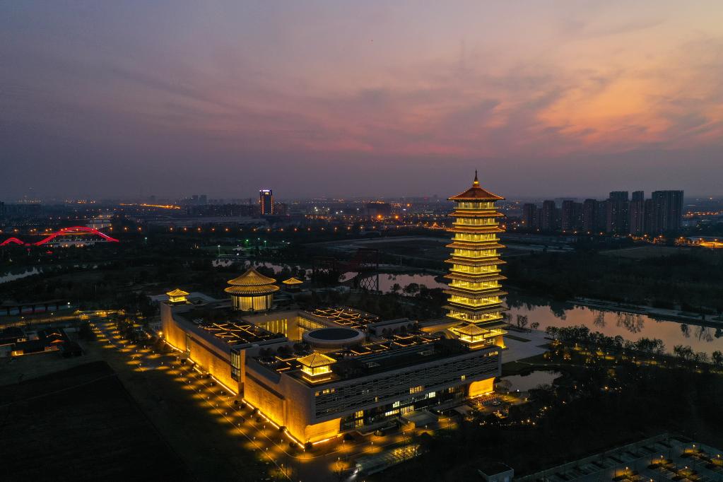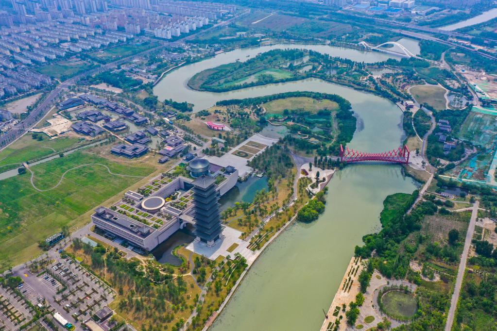 运河边的扬州中国大运河博物馆(无人机照片,2021年10月25日摄)。新华社记者季春鹏 摄