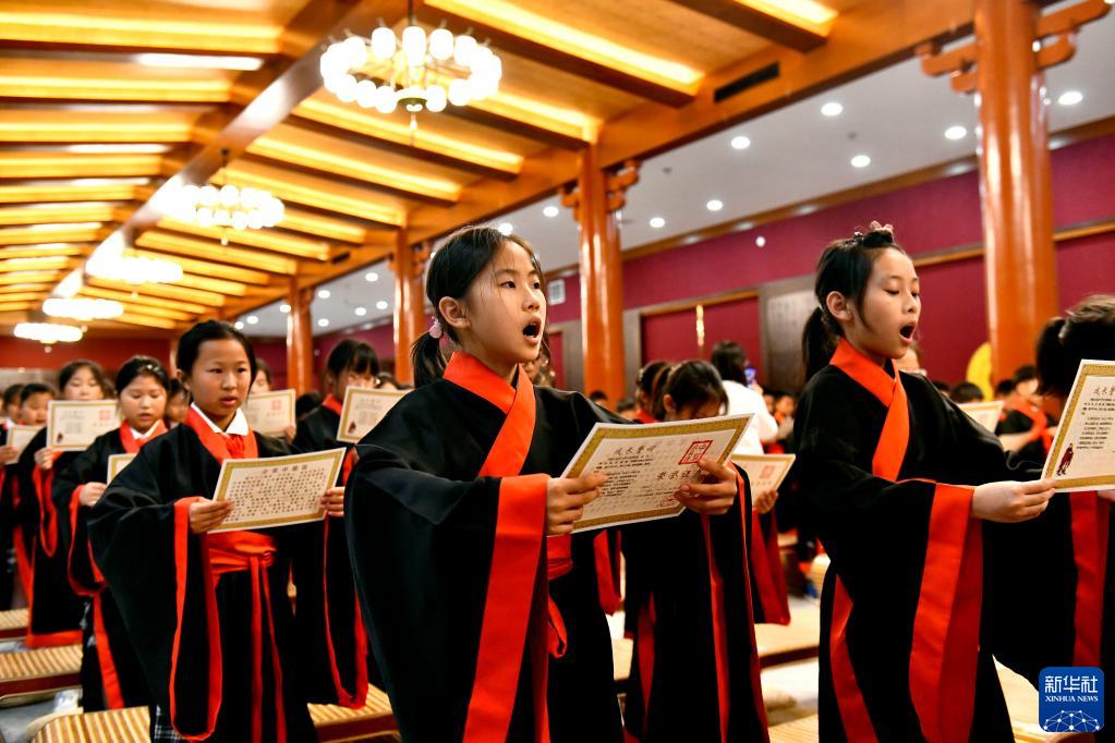 2023年6月9日,来自济南大学附属小学的同学们在曲阜市参加研学活动,并诵读经典。