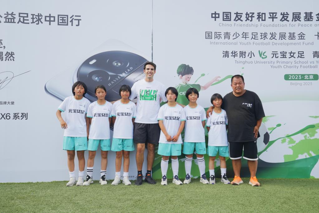 ↑“元宝女足”与卡卡合影。(受访者供图)