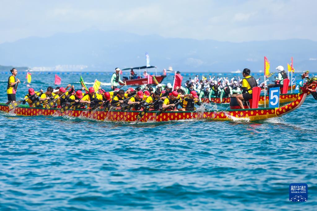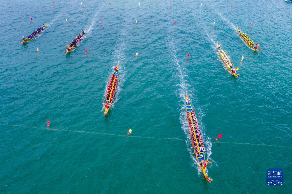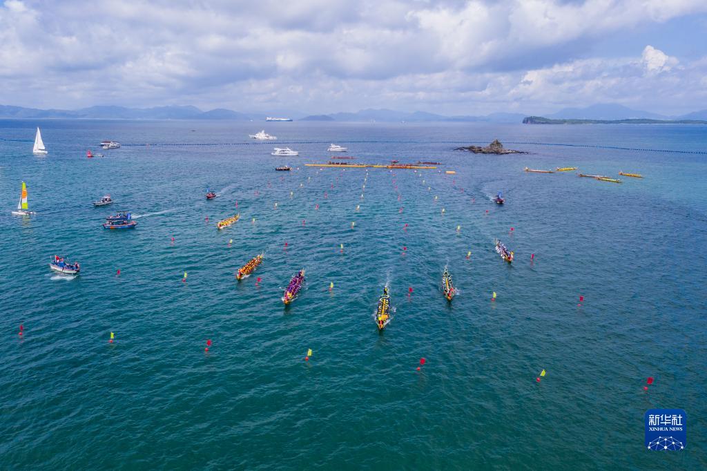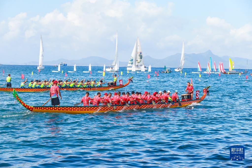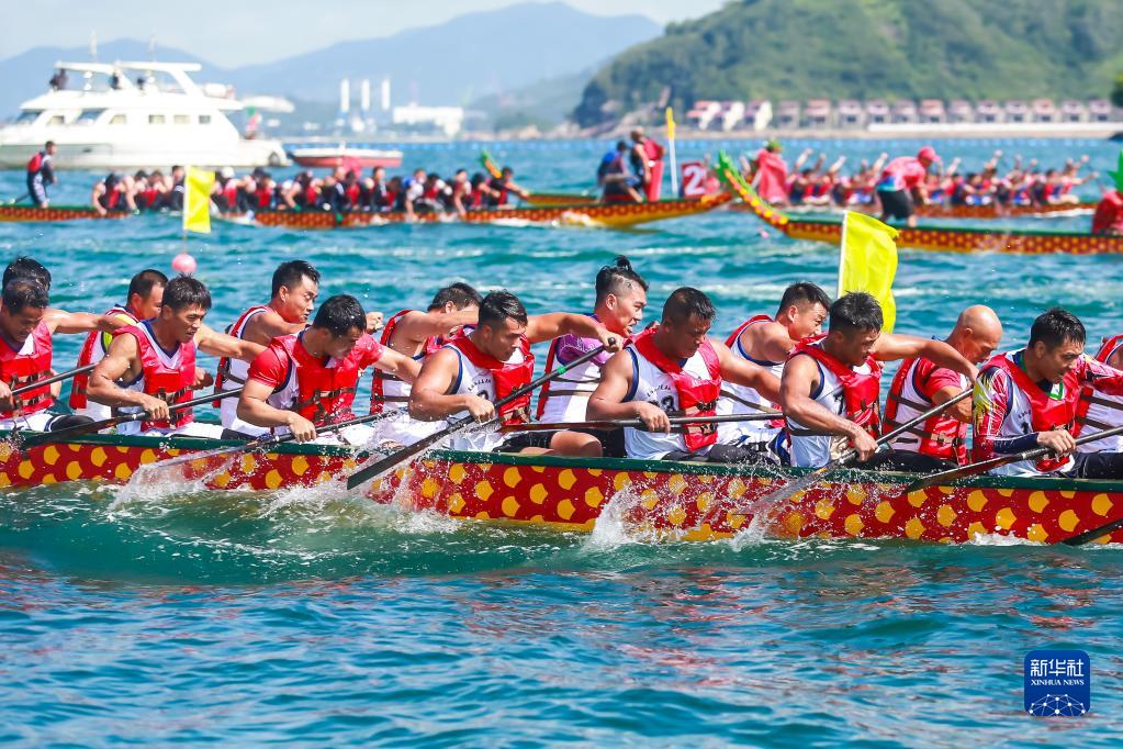 当日,2023粤港澳大湾区(深圳南澳)海上龙舟赛在广东深圳大鹏新区月亮湾海面举行,来自大湾区的29支队伍参加比赛。