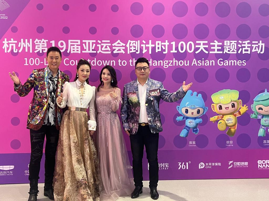 ↑周澎(右一)出席亚运会倒计时100天主题活动↑