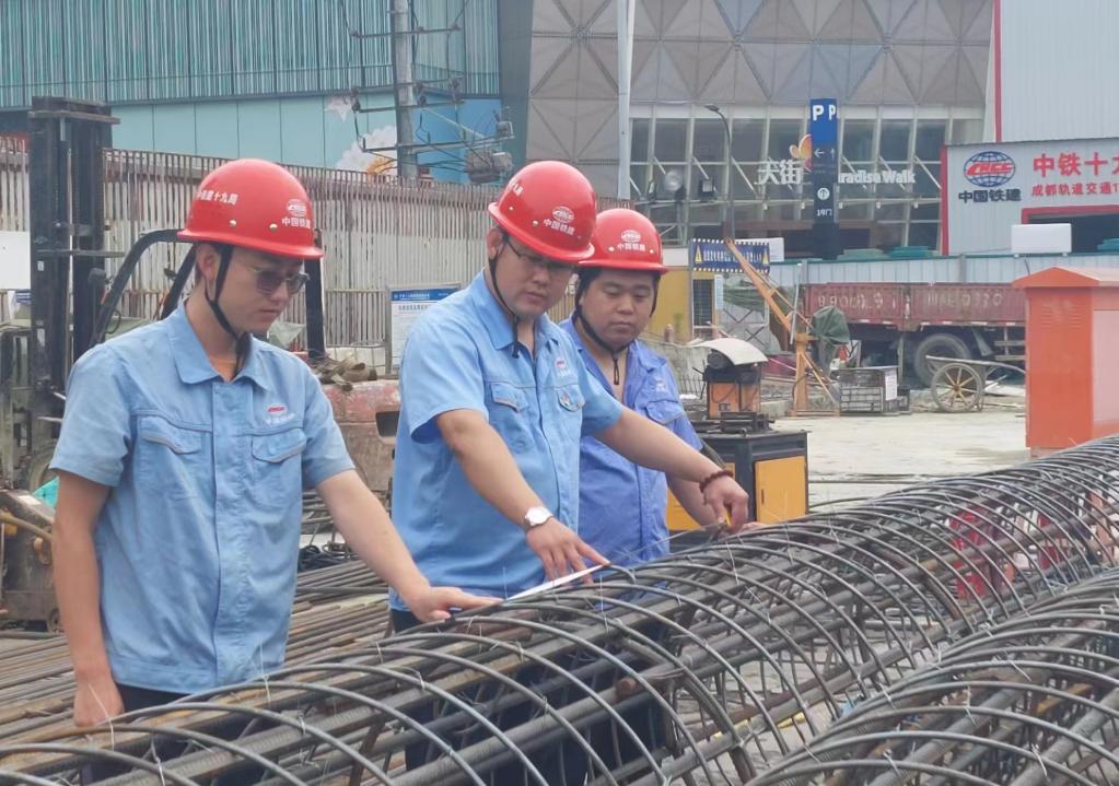 图为项目团队在测量钢筋笼箍筋间距。 新华社记者樊曦 摄