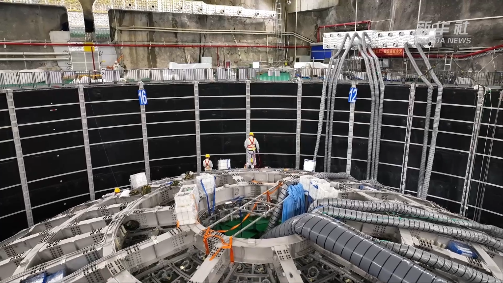 目前,地下探测器已完成不锈钢网架安装,正在进行有机玻璃球、液闪混制与纯化设备等安装,预计2024年建成并运行。届时,江门中微子实验将成为国际中微子研究的中心之一。