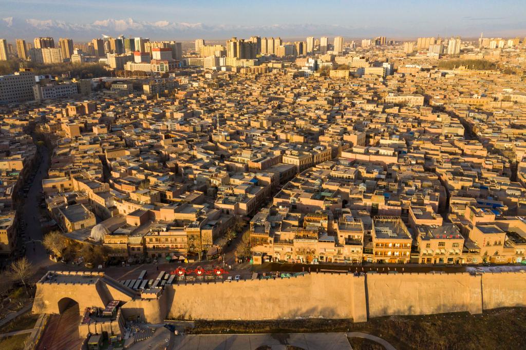 新疆喀什古城景区及周边城市建筑景观。新华社记者胡虎虎 摄