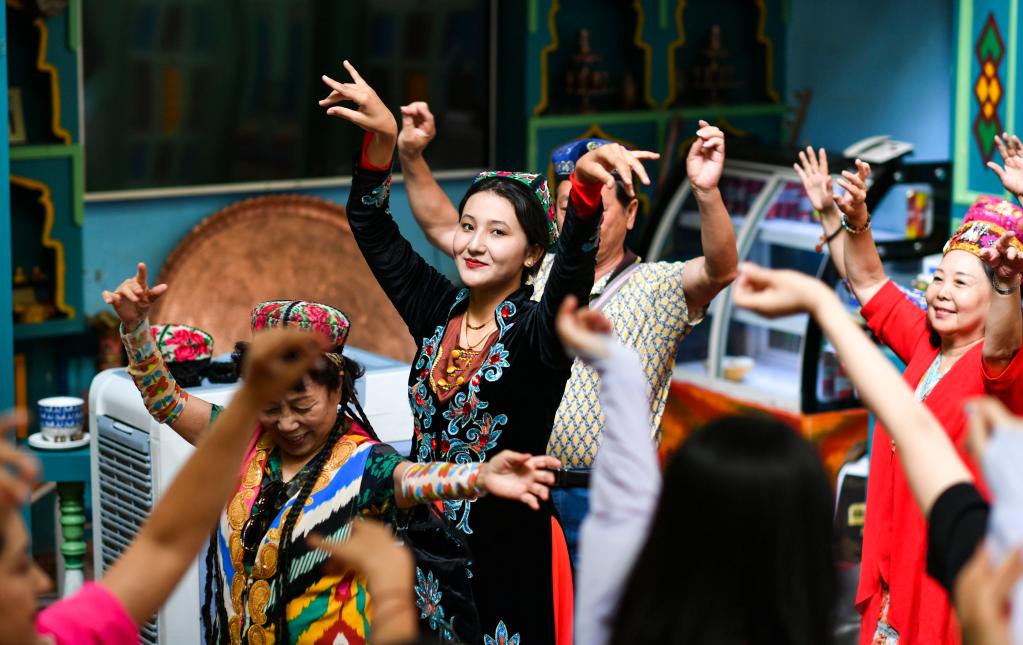 时下,徜徉喀什街头,各社区广场都能看到居民们欢快地歌舞、娱乐。京剧与秦腔同台竞艺,二胡与手鼓和谐成趣,维吾尔族的麦西来甫、藏族的锅庄舞、塔吉克族的鹰舞、动感时尚的街舞……不同民族、不同习俗的人们在这里共同生活、相互学习,其乐融融,像石榴籽一样紧紧抱在一起。