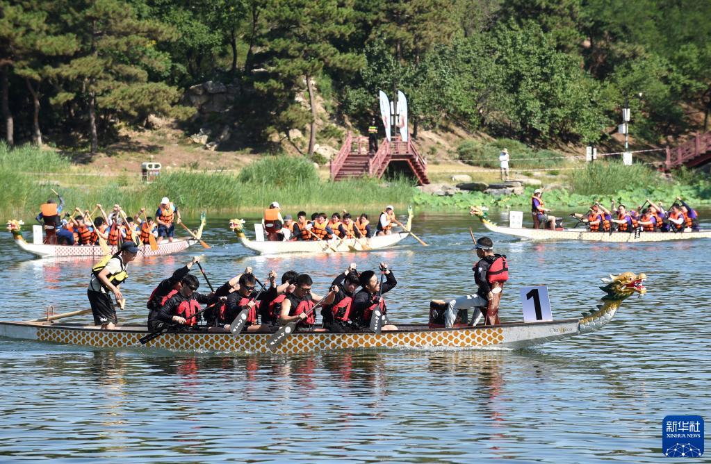 6月22日,参演龙舟在北京圆明园九州景区的后湖以绕标赛的形式进行龙舟竞渡展演。