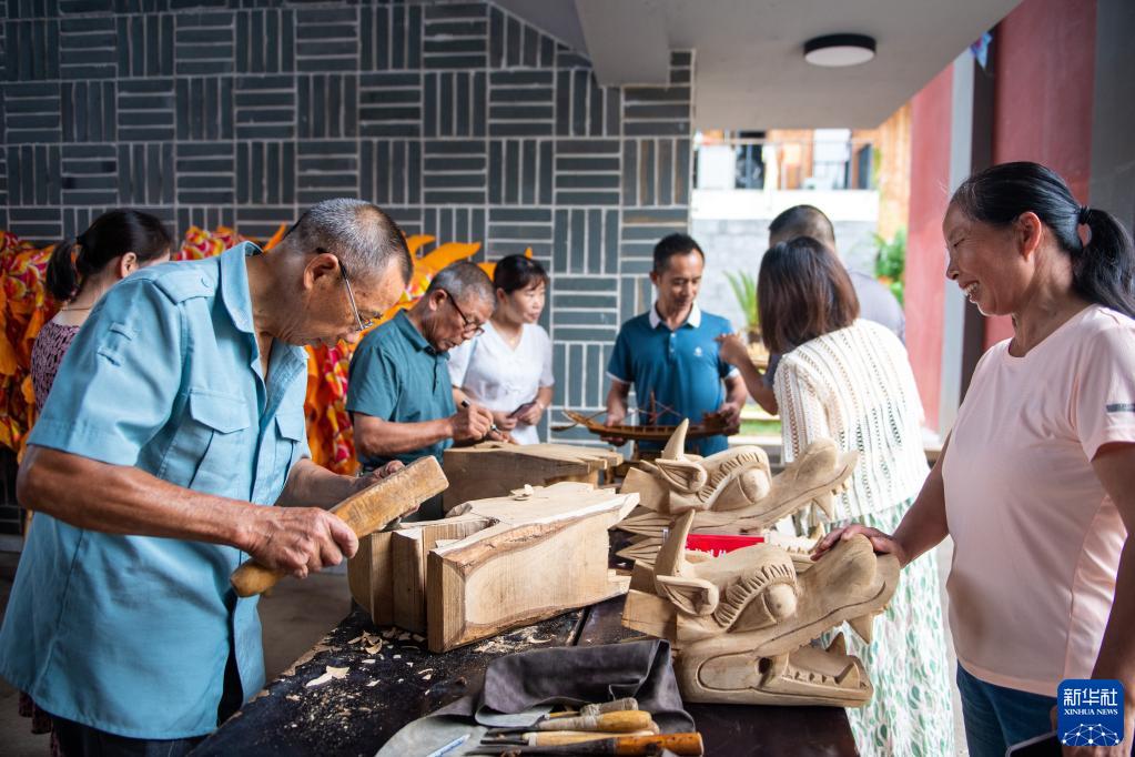6月22日,手艺人在湖南省岳阳市汨罗市屈子祠镇新义村向游客展示雕龙头技艺。
