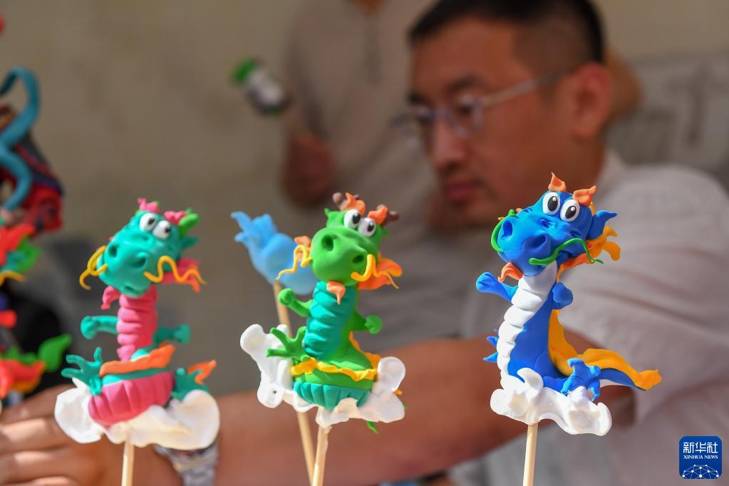 6月22日,手工艺人在吉林省长春市伊通河工业轨迹公园展示非遗手工艺项目。