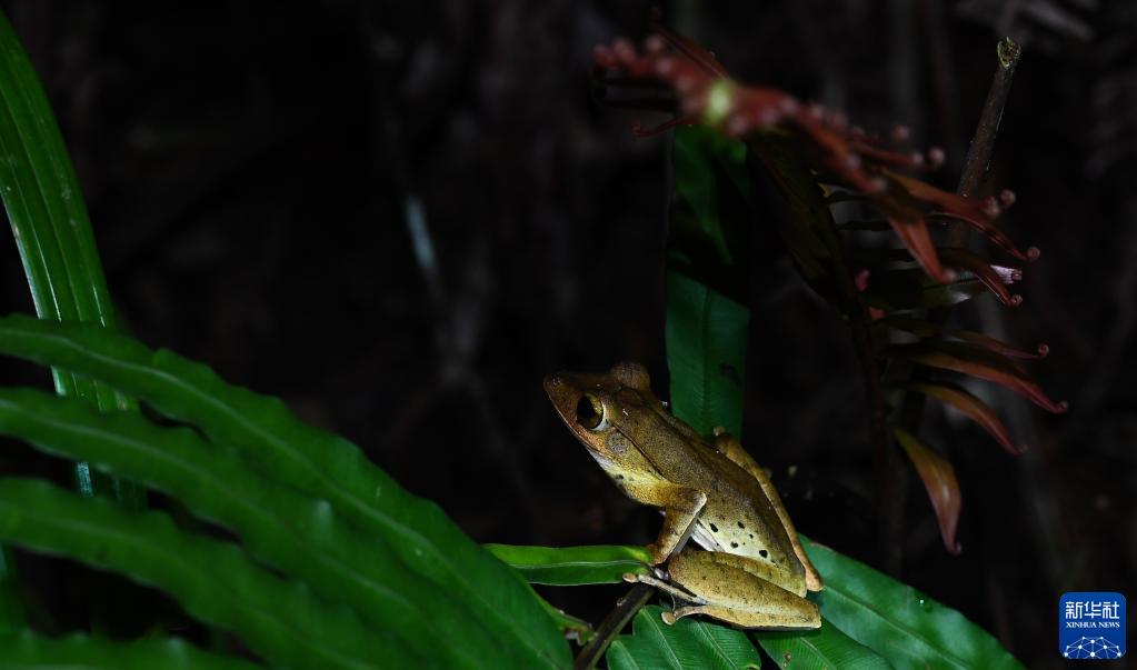 这是在海南热带雨林国家公园吊罗山片区拍摄的斑腿泛树蛙(6月14日摄)。