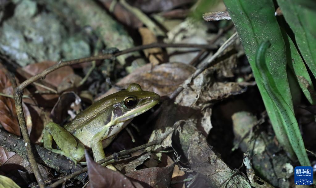这是在海南热带雨林国家公园吊罗山片区拍摄的沼水蛙(6月14日摄)。
