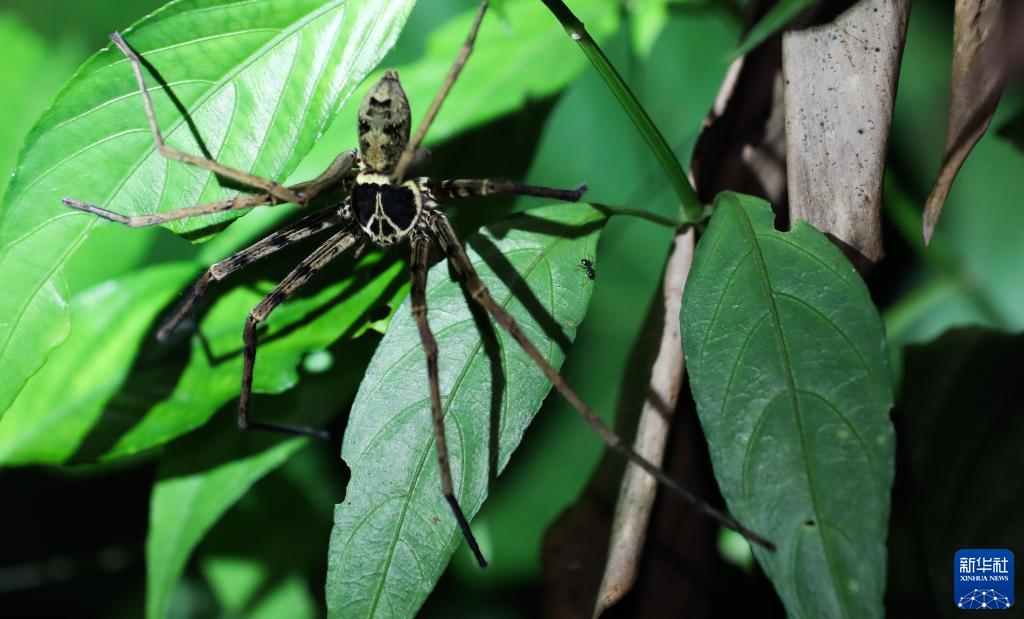 这是在海南热带雨林国家公园吊罗山片区拍摄的白额高脚蛛(6月14日摄)。