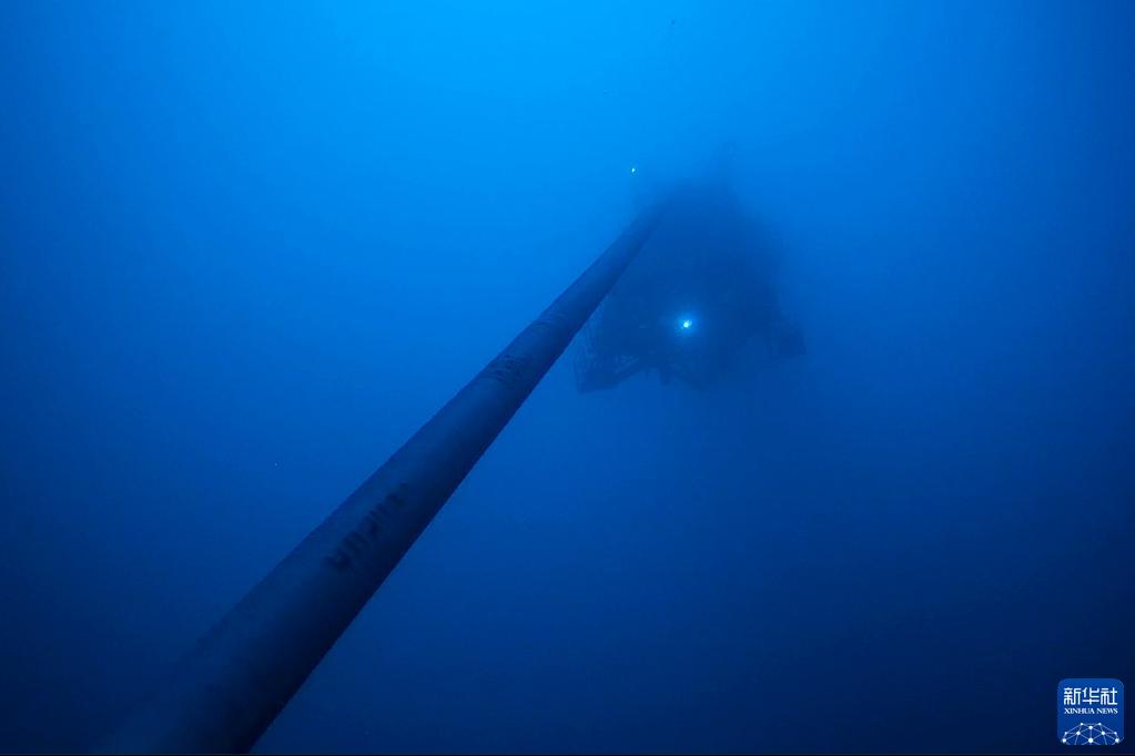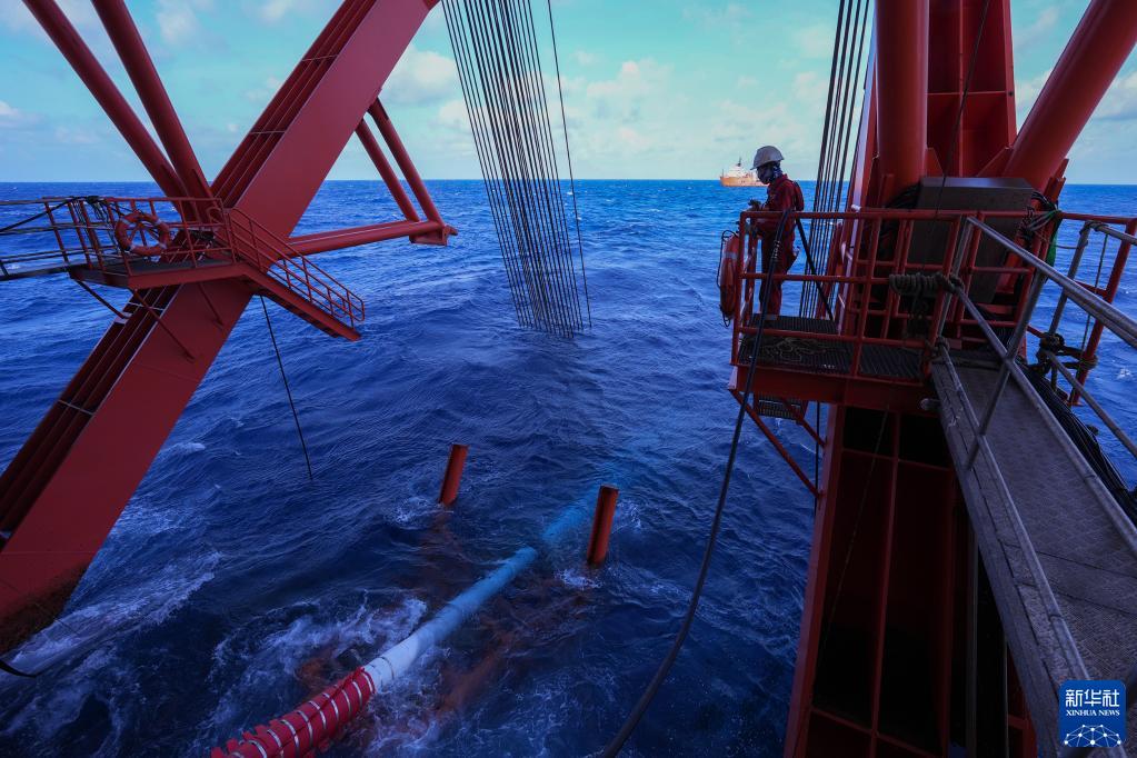 6月22日,海管入水铺设到近千米的海底。新华社发(韩庆摄)