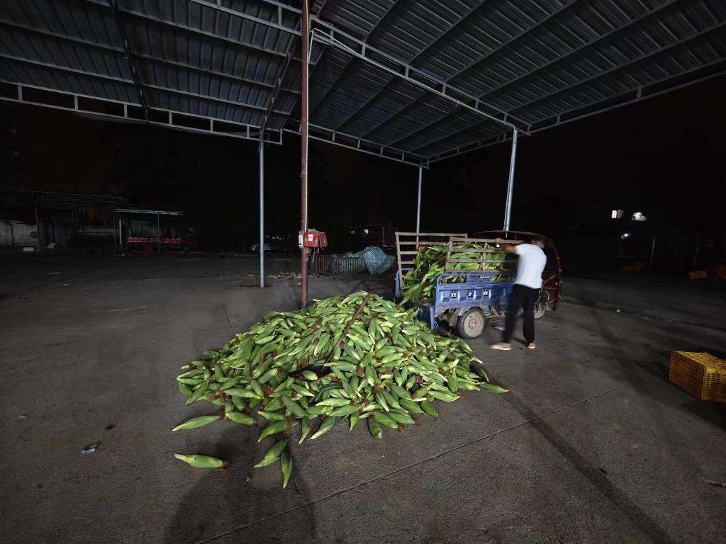 6月20日凌晨3点,刚清空的毛豆堆场,紧接着又堆上了新夜收的玉米。新华社记者谢佼 摄