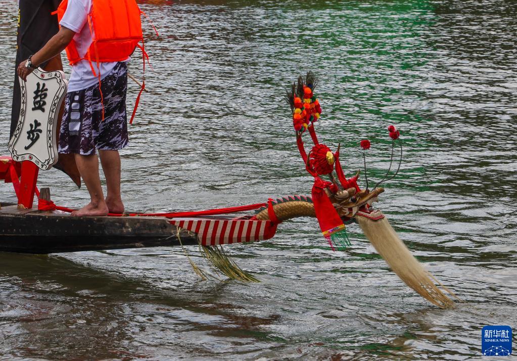 6月22日,“簪花挂红”之后的佛山盐步老龙在广州荔枝湾泮塘五约招景。