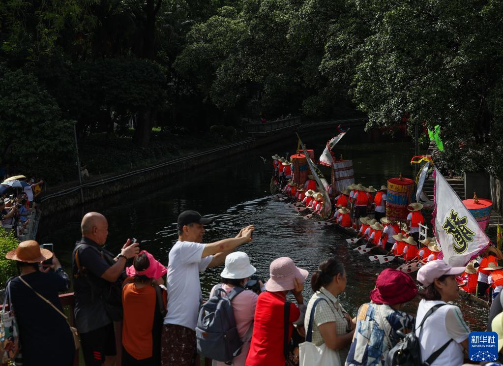 6月22日,佛山盐步老龙在锣鼓声中进入广州荔枝湾涌。