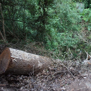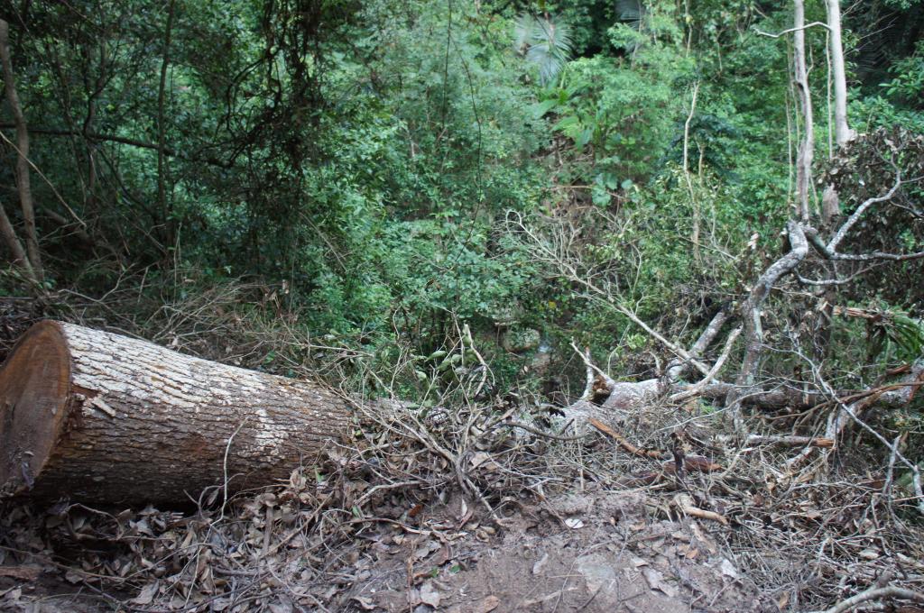 被犯罪分子盗伐砍倒的坡垒树。(受访者供图)