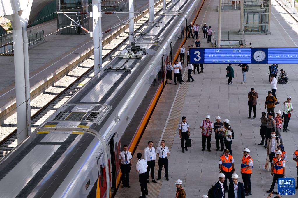 6月22日,在印度尼西亚万隆,雅万高铁综合检测列车停靠在德卡鲁尔车站站台。
