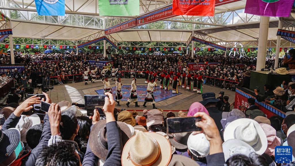 6月22日,拉萨市首届锅庄舞大赛在布达拉宫脚下的宗角禄康公园举办,吸引全市36支队伍参赛。
