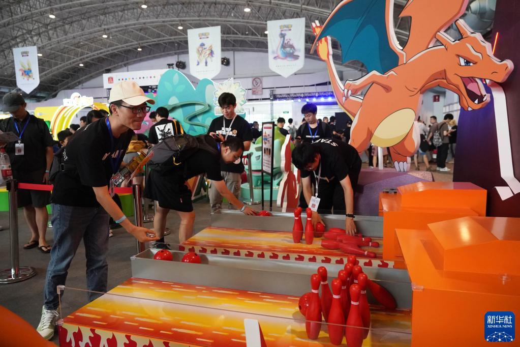 6月23日,观众在“2023宝可梦集换式卡牌游戏大师赛·北京”嘉年华活动现场体验互动游戏。