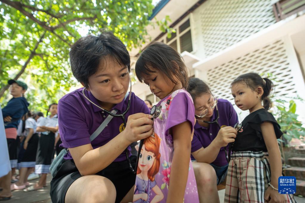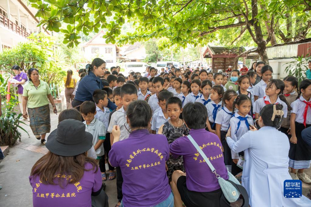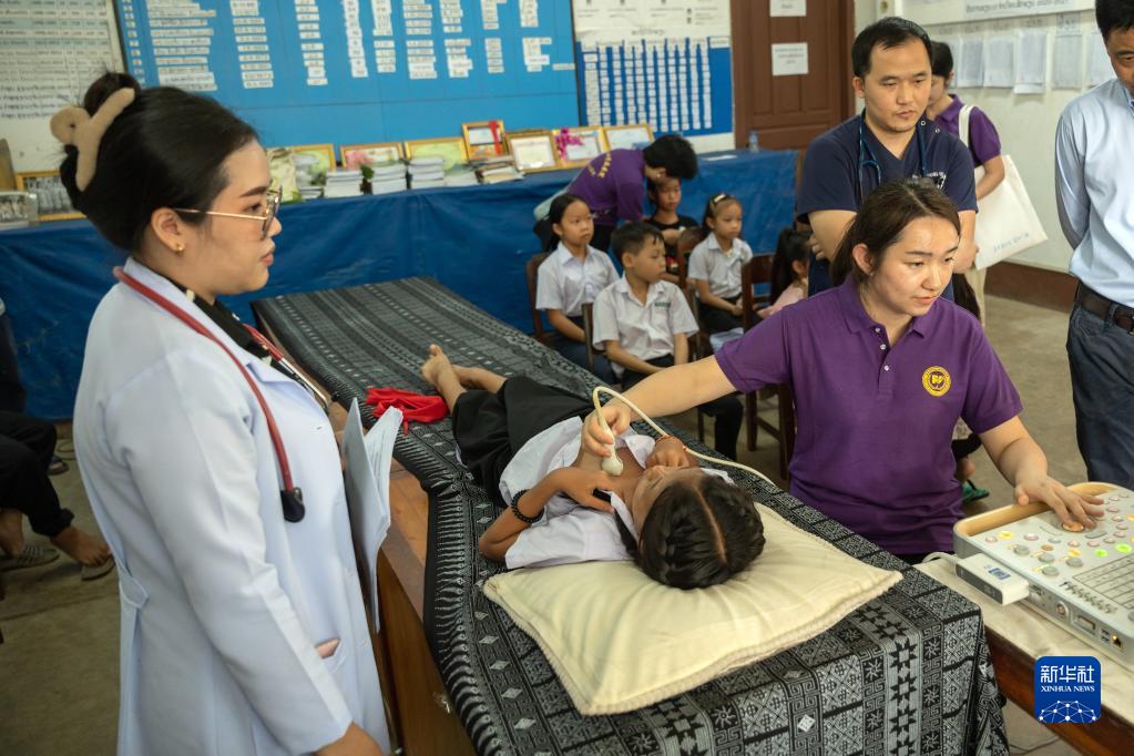 6月17日,在老挝北部琅勃拉邦,中国医疗组对当地儿童进行先心病免费筛查。新华社发(凯乔 摄)
