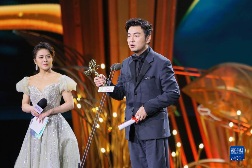 6月23日,《人世间》导演李路(中)获白玉兰最佳导演奖。新华社记者 辛梦晨 摄