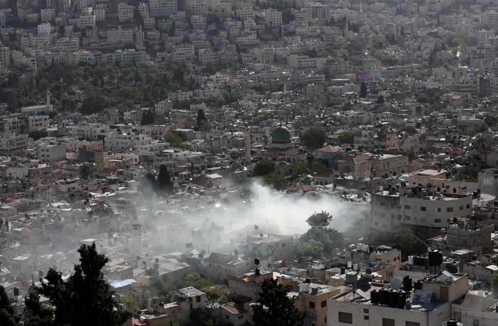 5月4日,约旦河西岸城市纳布卢斯一处房屋在被以色列军队突袭时升起烟雾。新华社发(艾曼·努巴尼摄)