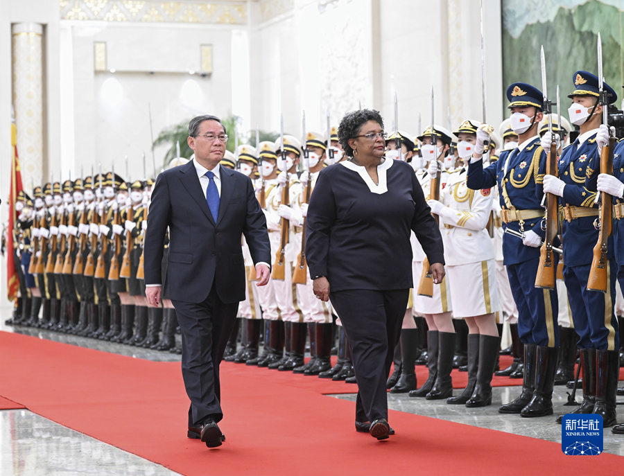 6月25日下午,国务院总理李强在北京人民大会堂同来华进行正式访问的巴巴多斯总理莫特利会谈。这是会谈前,李强在人民大会堂北大厅为莫特利举行欢迎仪式。新华社记者 张领 摄