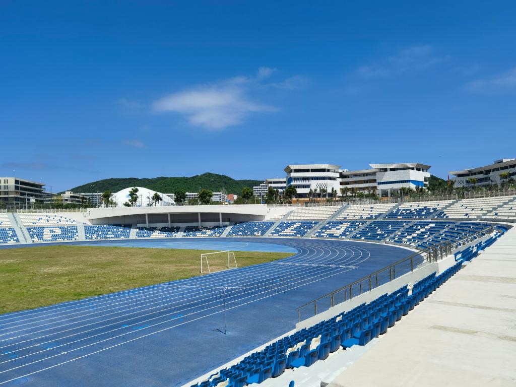 6月27日在海南陵水拍摄的国际教育创新试验区园区内的运动场。新华社记者 刘勇贞 摄