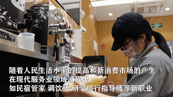 随着人民生活水平的提高和新消费市场的产生,在现代服务业领域涌现出如民宿管家、调饮师、研学旅行指导师等新职业。短短几年“民宿管家”从业者就实现由“0”到“百万”级规模的跨越,更多中青年返乡创业,为乡村注入更多“新鲜血液”。