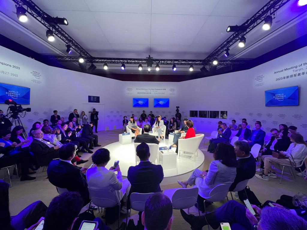 第十四届夏季达沃斯论坛现场。新华社记者李鑫 摄