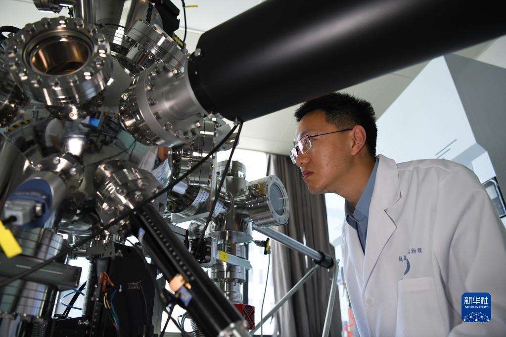 6月28日,在中科院合肥物质科学研究院强磁场科学中心实验室,郝林在检查真空中的样品及等离子体羽辉情况。