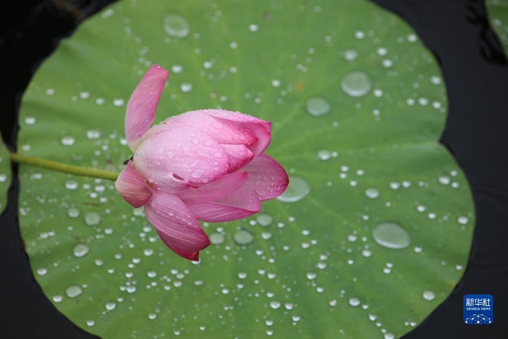 6月28日在河北省邯郸市广平县中央公园内拍摄的的雨中荷花。