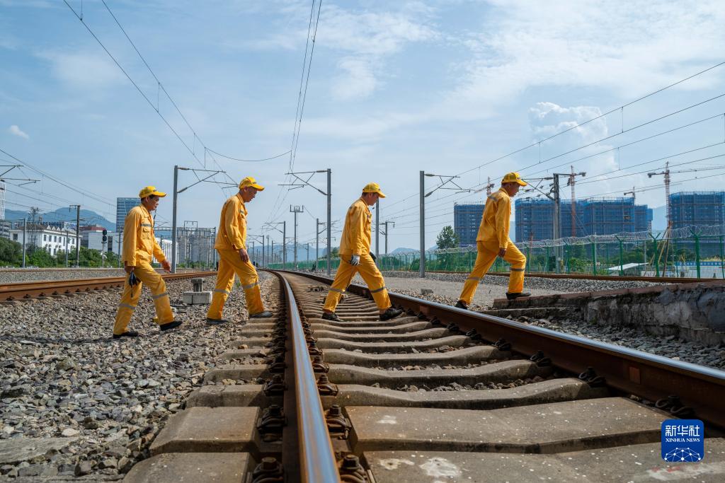 6月29日,温州保洁工区的工人结束一趟上水卸污作业后穿过铁路返回站台。