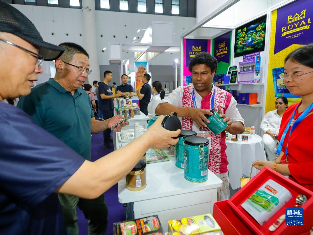 6月29日,在第十九届中国西部国际博览会“一带一路”国际合作馆的斯里兰卡展区,参展商向中国消费者介绍斯里兰卡红茶。