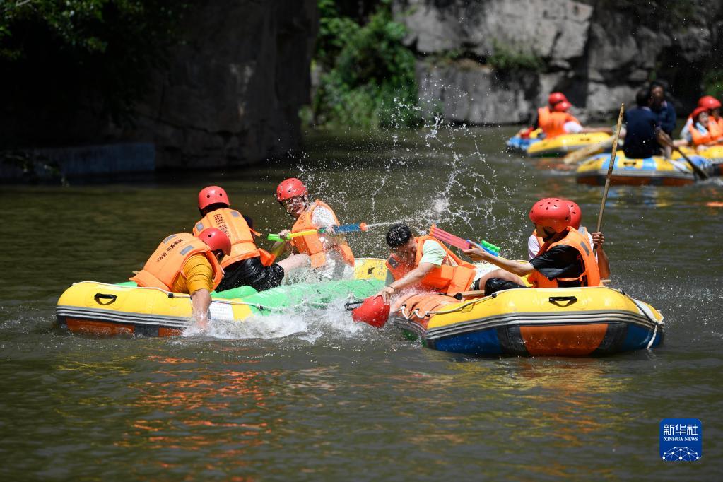 6月29日,游客在河北宽城满族自治县清河源景区漂流。