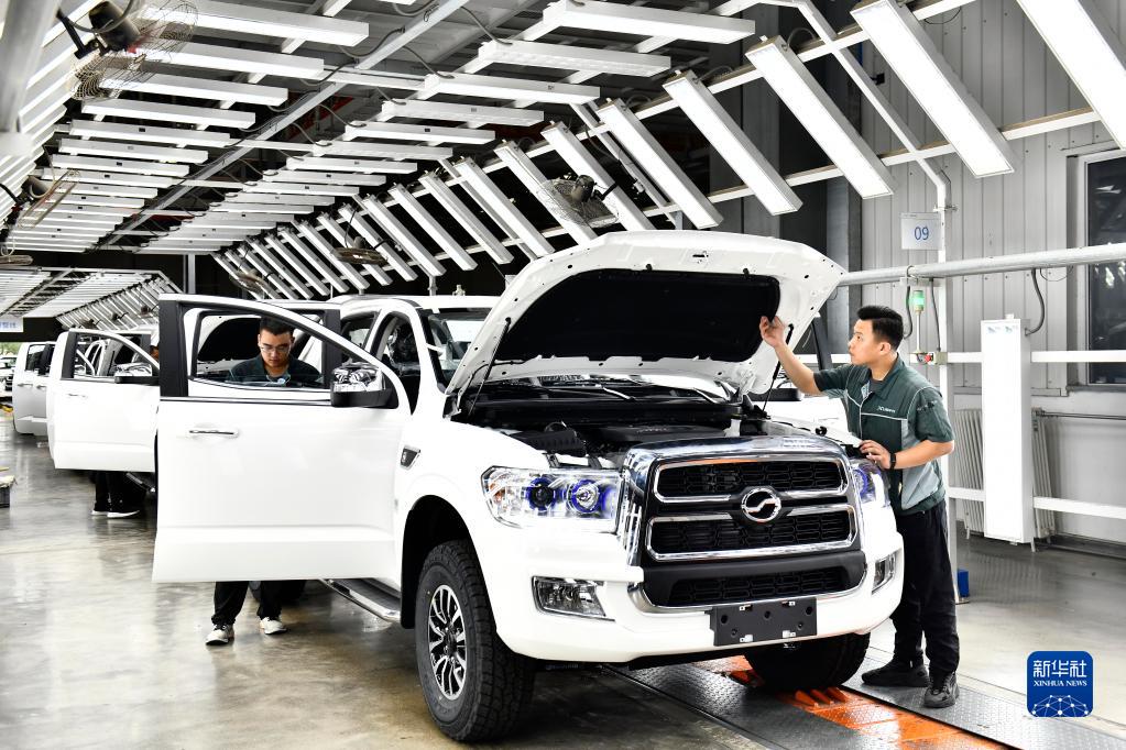 6月29日,工作人员在山东省日照高新技术产业开发区日照中兴汽车有限公司装配整车。新华社记者 郭绪雷 摄