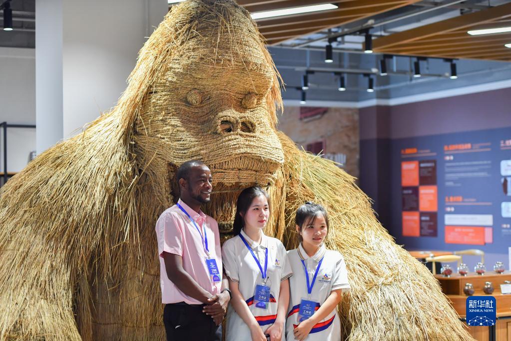 6月30日,在中非经贸合作促进创新示范园(湖南高桥大市场),来自尼日尔的志愿者周思(左)和中国志愿者蒋紫欣(中)、肖学英合影留念。