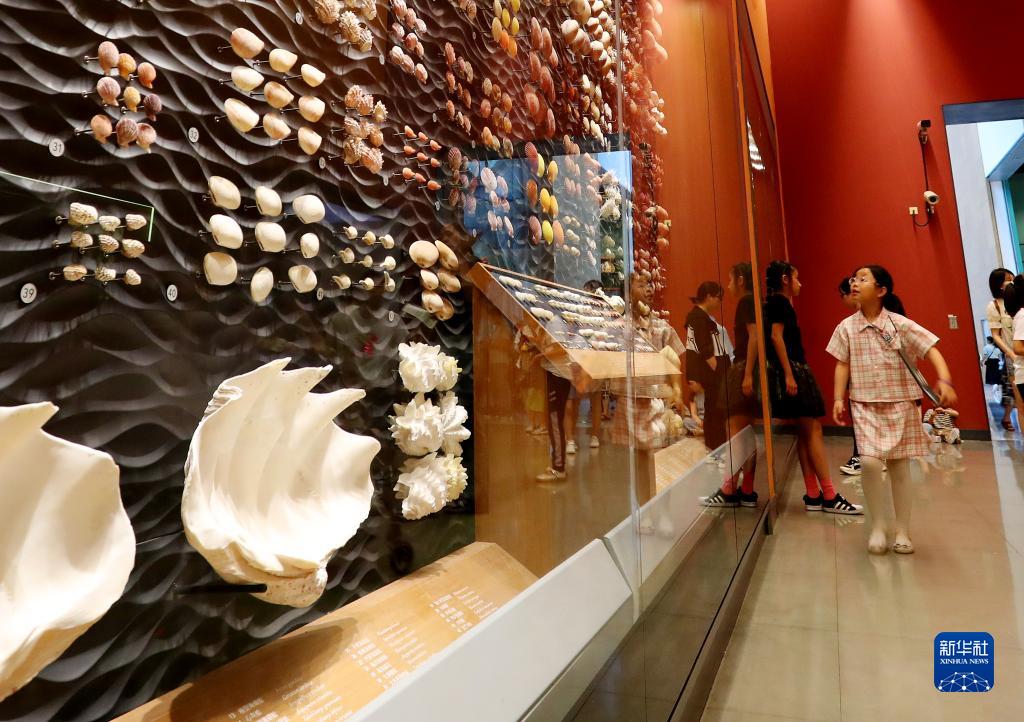 6月30日,小朋友在上海自然博物馆内参观。
